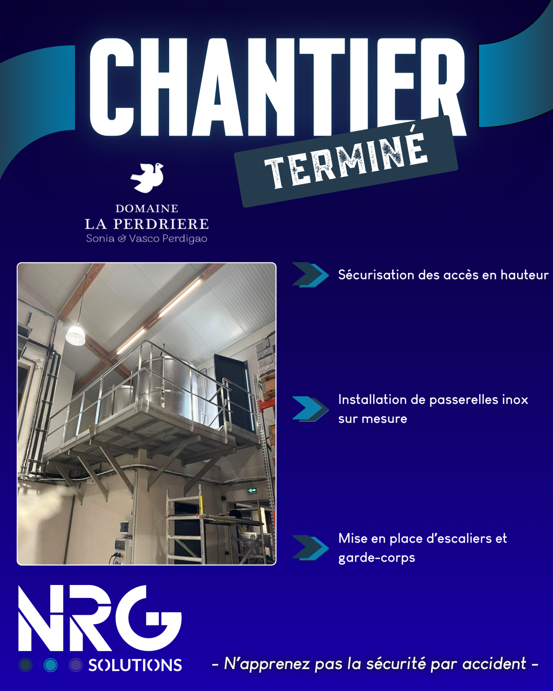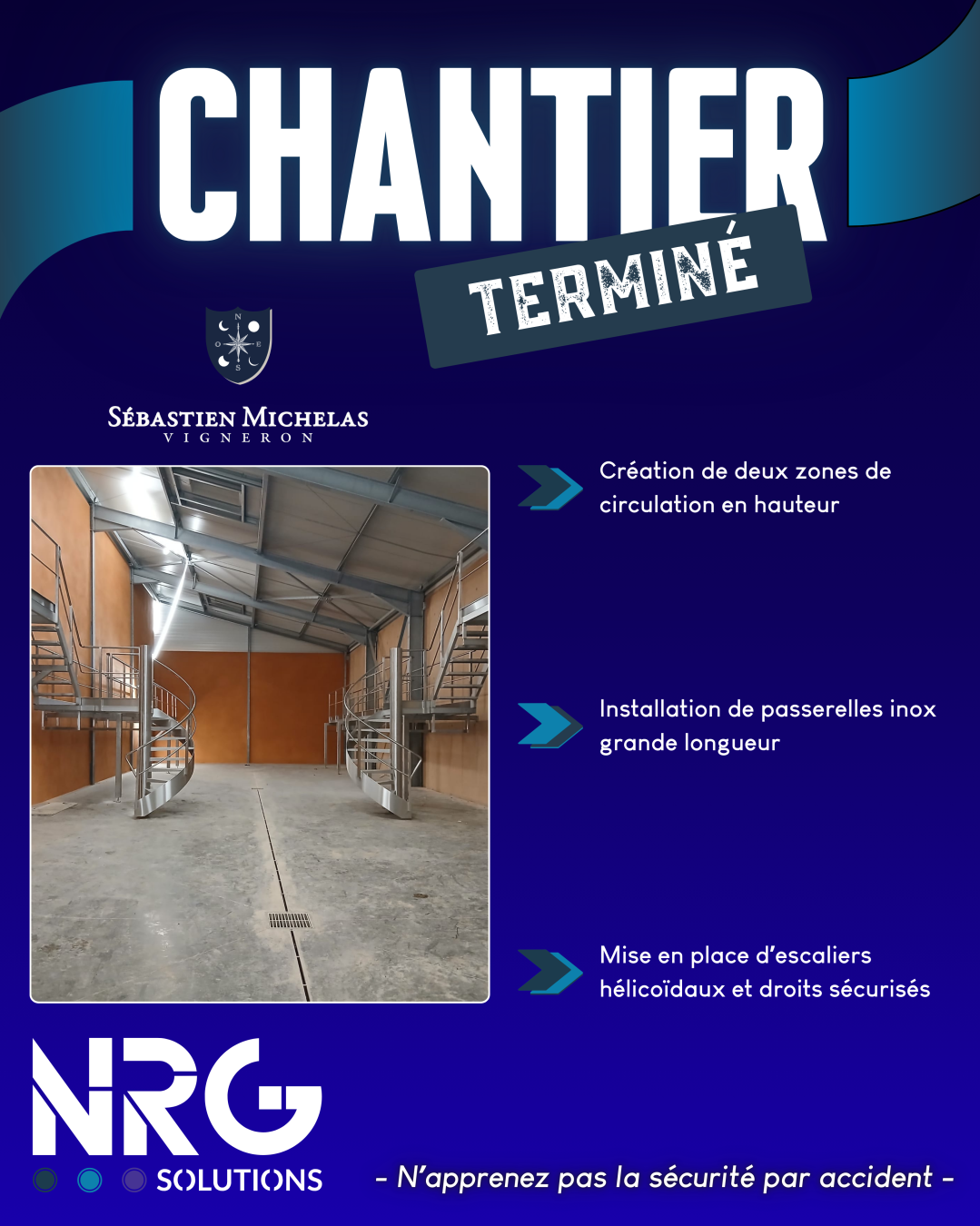 Notre collaboration avec NRG SOLUTIONS pour la construction de nos accès sécurisé en inox a été une réussite, marquée par une présence active sur le terrain, un accompagnement personnalisé du début à la fin, et l'utilisation innovante de plans 3D pour concrétiser notre vision. L'équipe de NRG SOLUTIONS a su se rendre disponible et à l'écoute, nous guidant avec expertise à chaque étape du projet. Leur travail sur site a été réalisé avec un grand professionnalisme, garantissant non seulement la qualité et la sécurité de la construction, mais aussi une intégration esthétique dans notre espace. L'utilisation de plans 3D a enrichi le processus de conception, nous permettant de visualiser et d'affiner le projet avec précision. Nous recommandons NRG SOLUTIONS pour leur approche complète et leur excellence opérationnelle.
